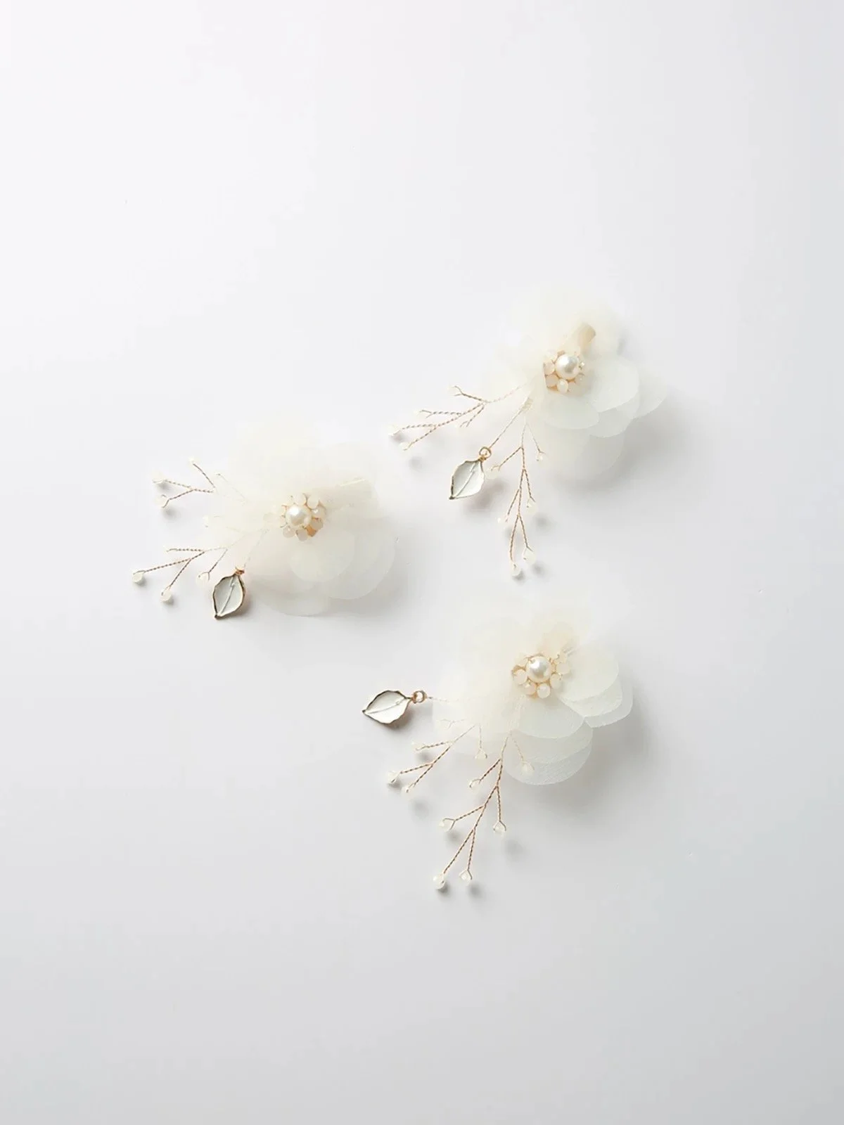 Categories: View All New Arrivals A Mother's Honor RTW-Dresses Evening Gowns Bridesmaids & Wedding Guests Qipao Accessories For the Boys Headpieces Earrings View All / Accessories / Headpieces Antheia Ivory Chiffon Floral Hair Clip (set of three) $30.00 Add To Cart Added!